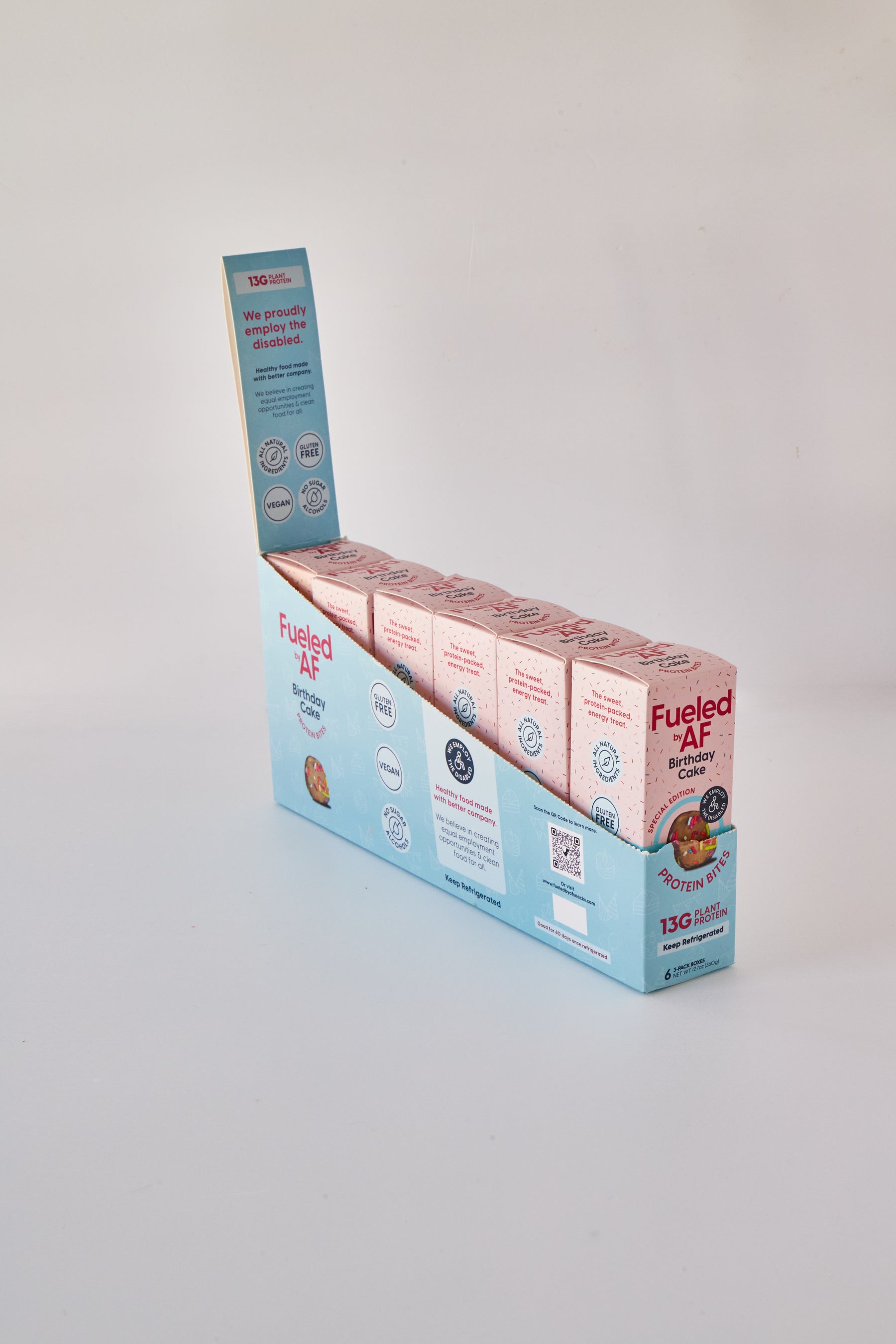 We use naturally colored sprinkles made from real fruit and vegetable juices, so you get a vibrant, festive treat that’s both wholesome and satisfying. Unlike traditional dry cake mixes, these bites are fresh, flavorful, and packed with better-for-you ingredients.